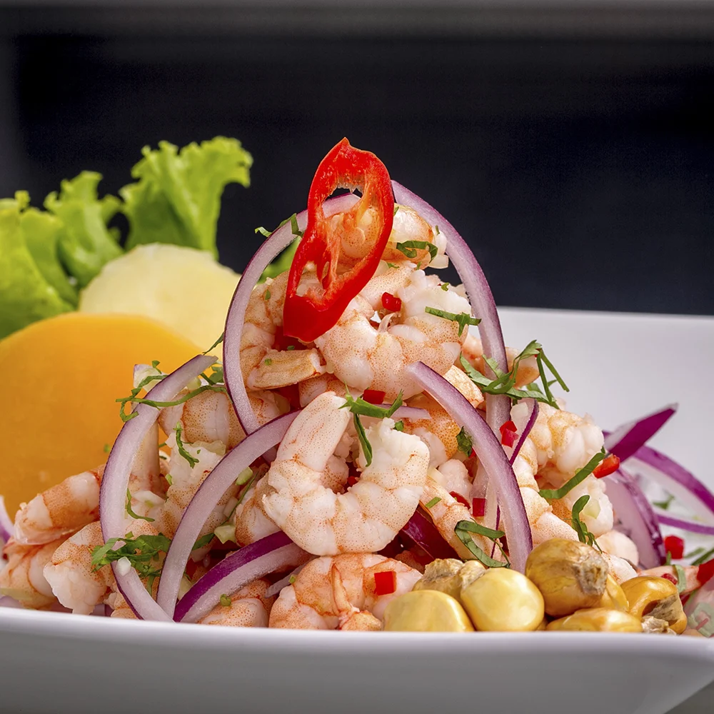 Entre os pratos mais procurados está o clássico ceviche, preparado com peixe fresco e envolvido pela tradicional leche de tigre, que garante o equilíbrio entre acidez e frescor. É uma das escolhas certeiras para quem quer começar a experiência com um dos maiores ícones da cozinha peruana.